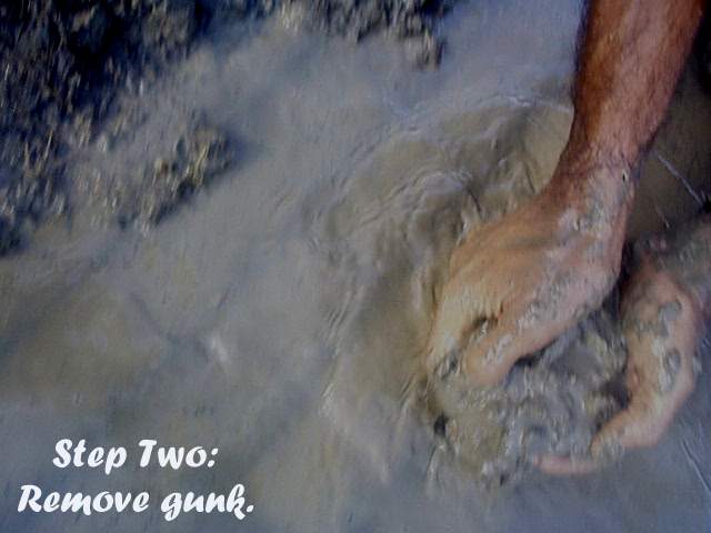 straw, or your strong worker's hands, remove water and debris from the bottom