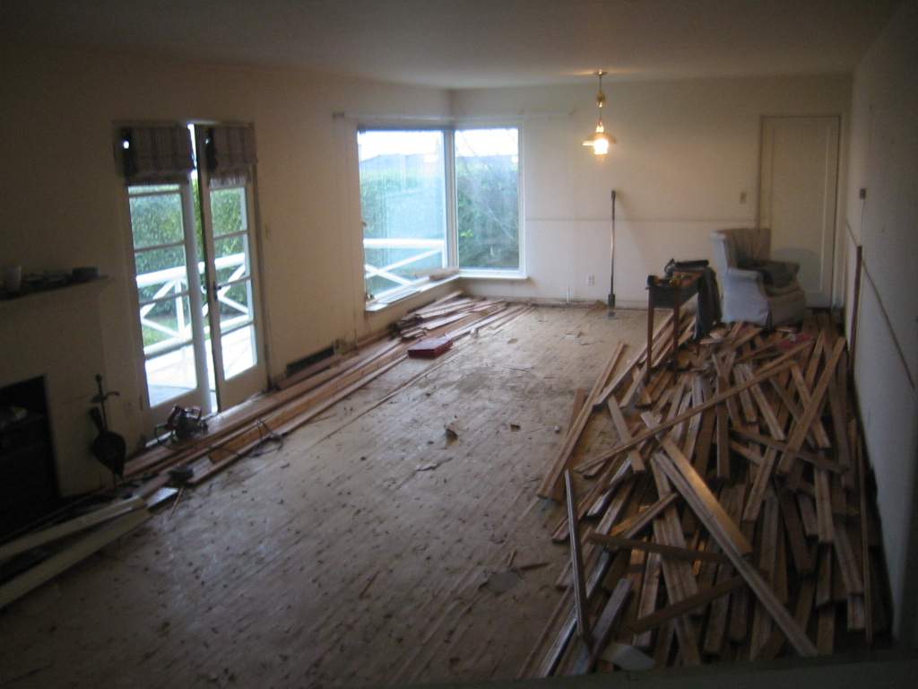 tracks.) After pulling up several hundred square feet of oak flooring, Joel