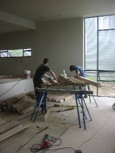 | You can measure a day by the distance between the places you have been. With both my bikes left behind at The RE Store I took the bus to work this morning. It's a nice gradual uphill walk to the 44 westbound stop at fremont and 46th streets. You pay as you leave on this leg and I do and take a transfer in the unlikely event I get sent home. No such luck today, we resume a big job on the east side, 2700 sq. ft. of newly installed improperly milled 4" white oak to be pried up, sorted, and destapled by cutting twin fastener shafts with a Sawzall. We finished the upstairs 1/3 last week but had to interrupt our work while the mill people came to investigate the claim that something went wrong with their wood. For some reason I go on a pulling tear today. I pop boards all day while Ben and Noel take turns sawing staples and bundling the wood with narrow bands of cling wrap. Pulling and sorting was like doing an installation in an ultramodern steel and glass lakeside gallery. After work, Ben, Jeremy, Rachel, and I cracked a couple of beers left behind by Taylor. After 8, I rode my bike 4 blocks to the eastbound 44 stop at market and 14th ave NW. It came almost immediatley, which was a relief because I was worn out and I seldom sit at bus stops. I took the OWL transfer to add to my collection. (The way it works is you have two hours to use a transfer, but the nicer metro operators set the tear in your favor.) On the downhill roll home from phinney and 46th I stopped at Craig & Adria's to pick up Sarah's boots and the bag I left behind yesterday. They fed me then we freaked out playing with Barbies.... |