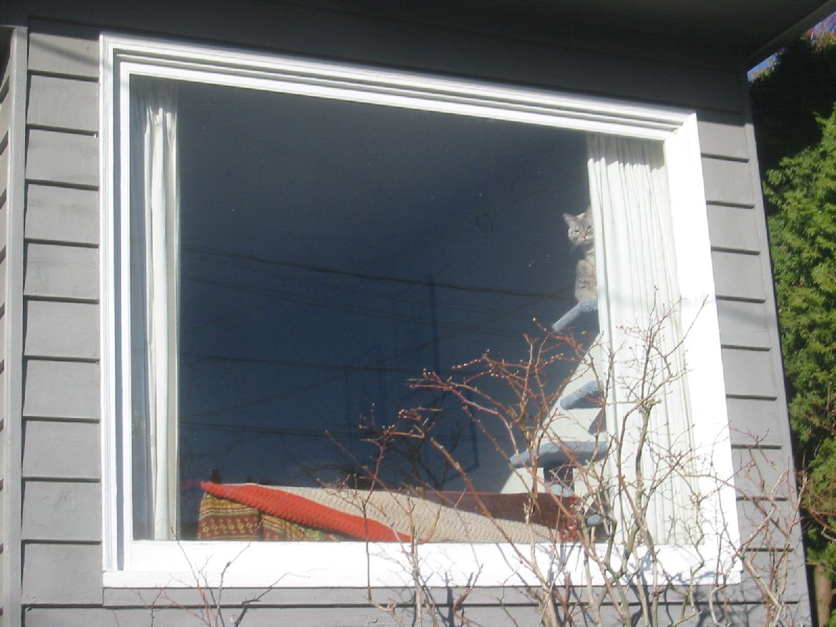 a cat observing us through a window